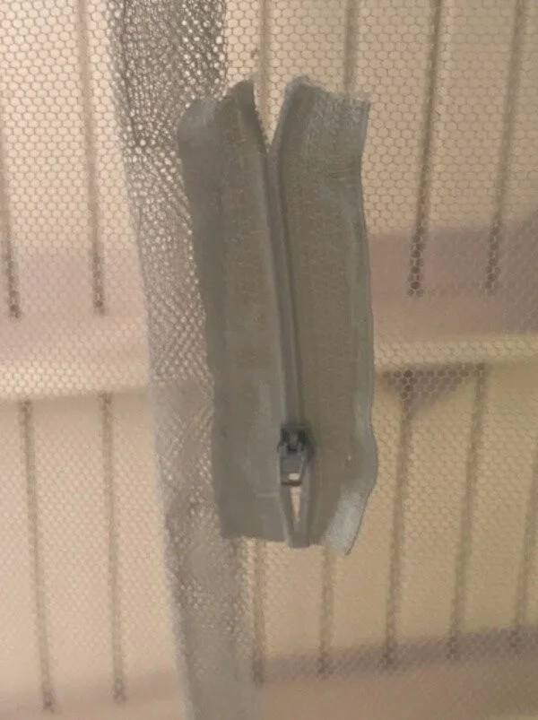 Если вы разрежете сетку позади молнии, то через получившееся отверстие сможете продеть, к примеру, кабель или пропустить что-то еще нужное. А потом вы застегнете молнию - и в палатке не останется отверстия.