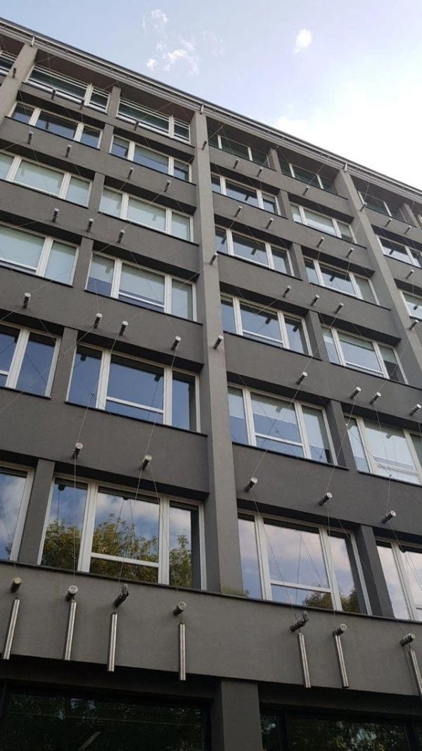 Что это за странная система из кабелей и грузов на фасаде здания?