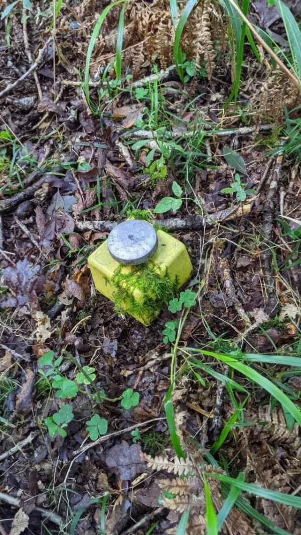 Что это за кнопка в лесу? Мы не стали её выковыривать. Судя по мху, она здесь уже давно