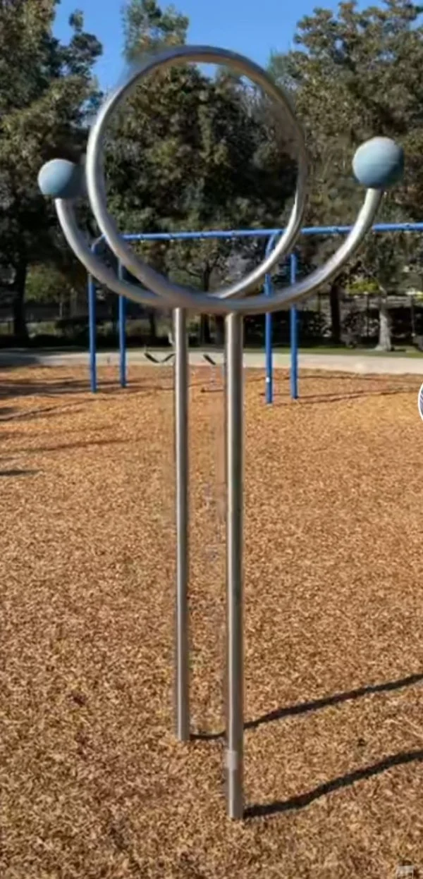 Увидела это на детской площадке. Спираль с двумя шарами на концах, сделана из металла, стоит на двух столбах. Что это за штука?