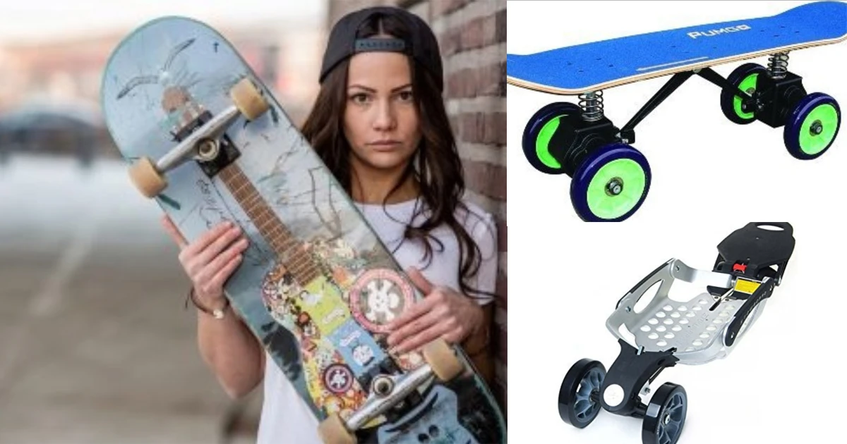 Pumgo, на котором не надо отталкиваться от земли, разгоняется при нажатии на нос и конец деки с помощью 4WD системы.