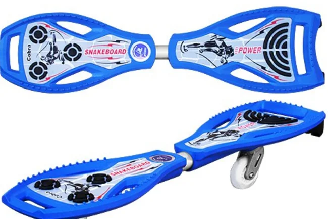 Снейкборды: конструкция из двух пластиковых секций, соединённых подвижным шарниром. Имеют только два колеса и для трюков не предназначены.