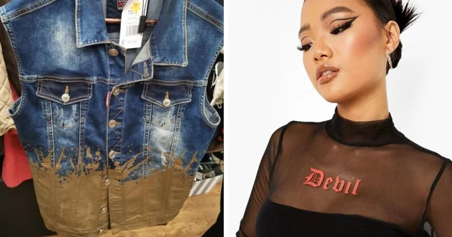 Иногда принты на вещах выглядят как грязь, кровь и другие не самые приятные пятна, особенно если они расположены не в самых удачных местах. А то, что казалось дизайнерам оригинальным, в жизни оказывается просто странным. Мы собрали для вас несколько примеров неудачной одежды.