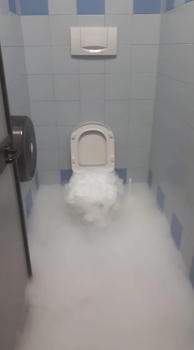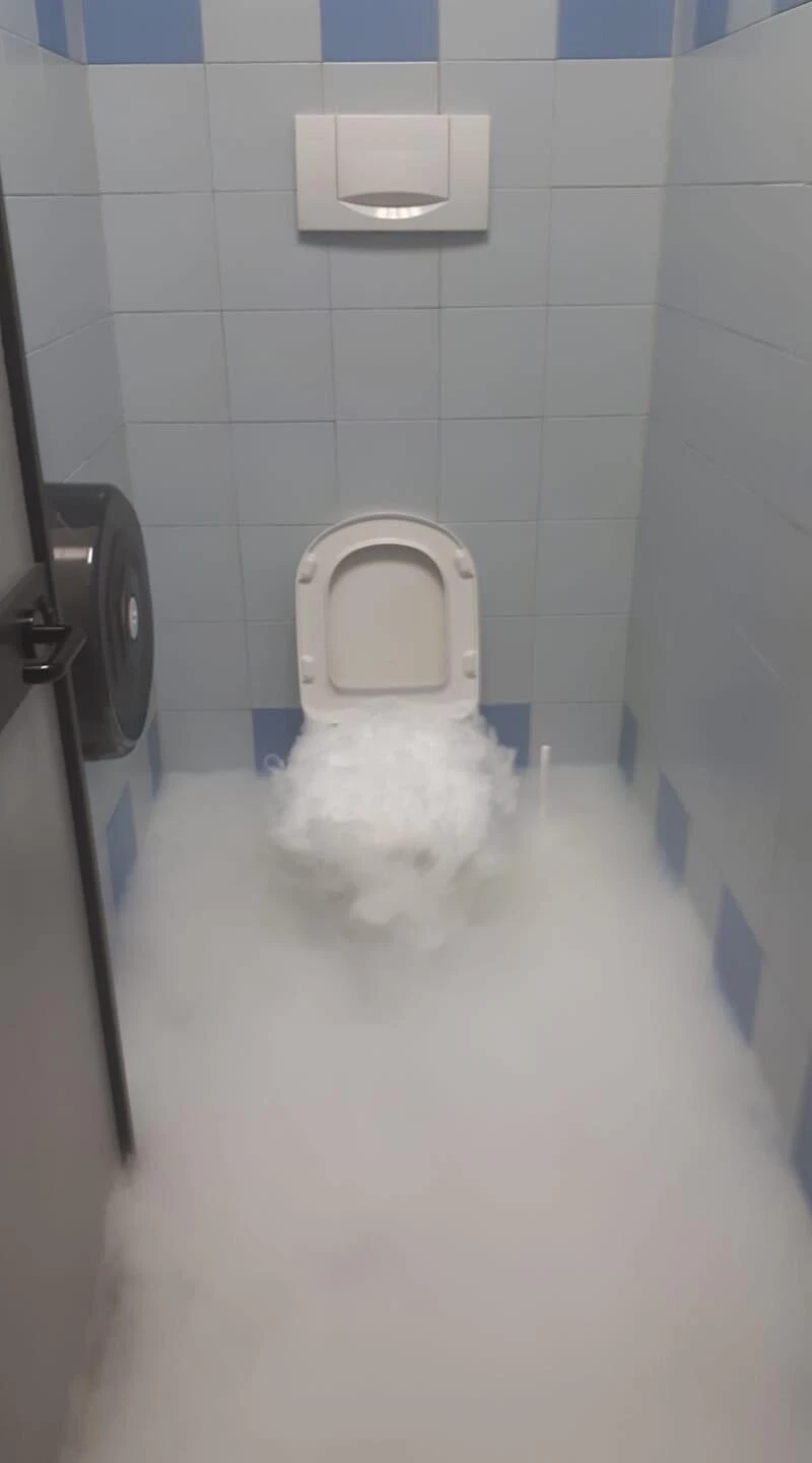 8. "Сотрудник по ошибке спустил сухой лед в унитаз"