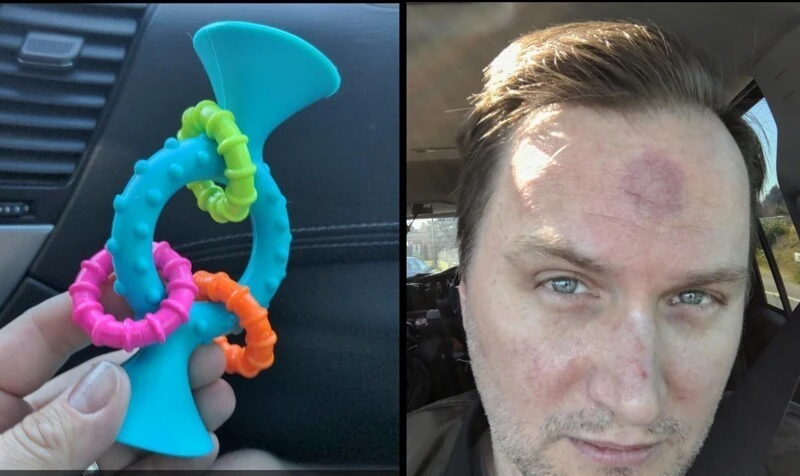 4. "Прилепил себе на лоб игрушку на присоске и разрешил ребенку тянуть за нее. Не повторяйте моих ошибок"