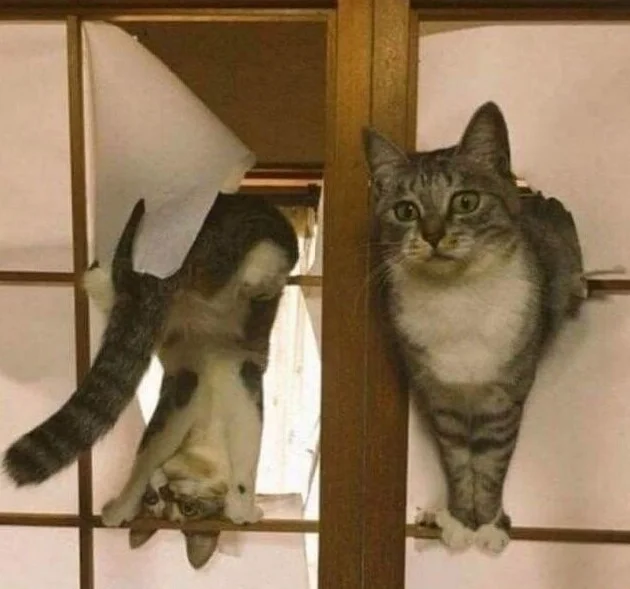 25. "Я совершил ошибку, установив традиционные японские раздвижные двери в доме с кошками. Идея была так себе"