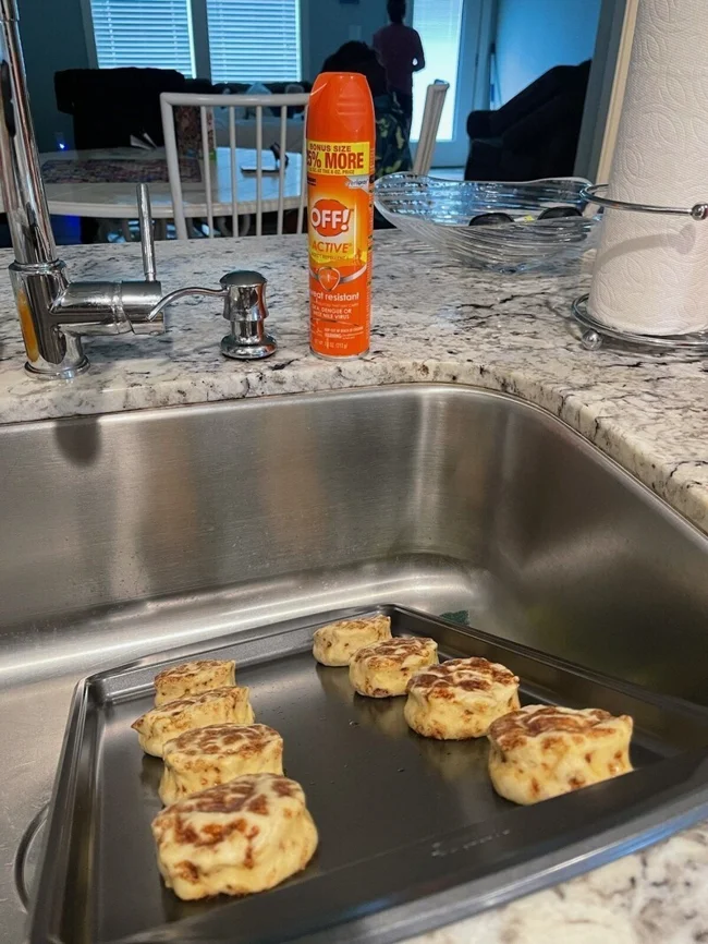3. "Мама перепутала флаконы и побрызгала противень средством от насекомых. Конечно же, осознала она это уже после выпечки"