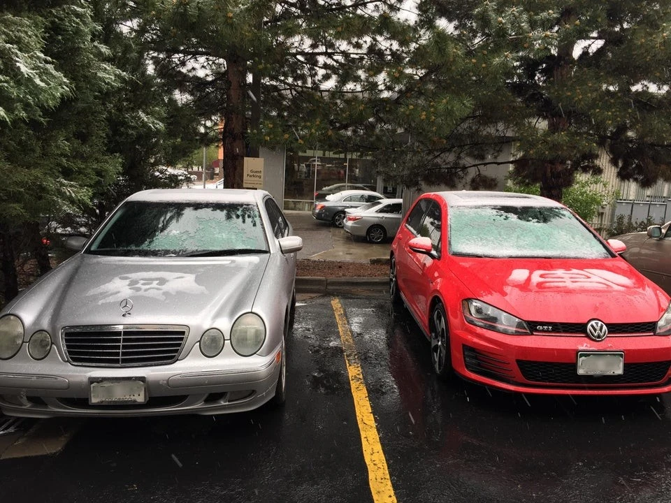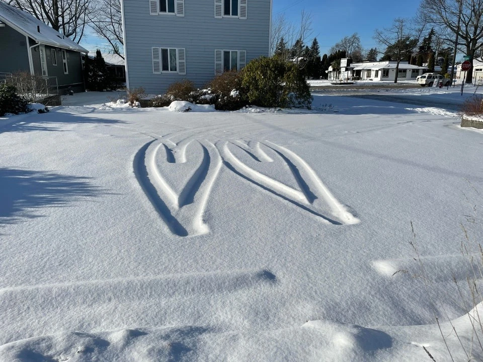 Снег немного соскользнул с крыши, прежде чем снова замёрзнуть — отсюда и горизонтальные сосульки!