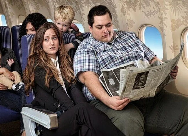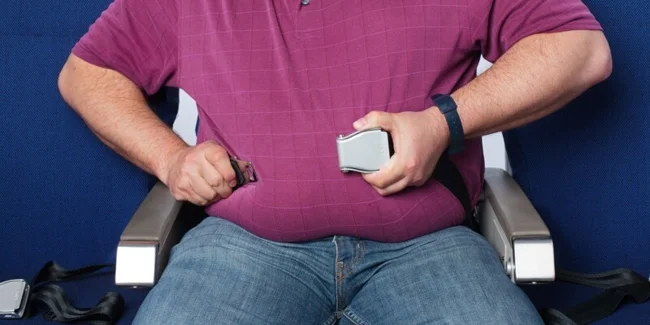 Полный человек может с трудом помещаться в кресле, или же на нем не застёгивается ремень безопасности. Да и соседям, сидящим рядом, тоже приходится испытывать неудобства.