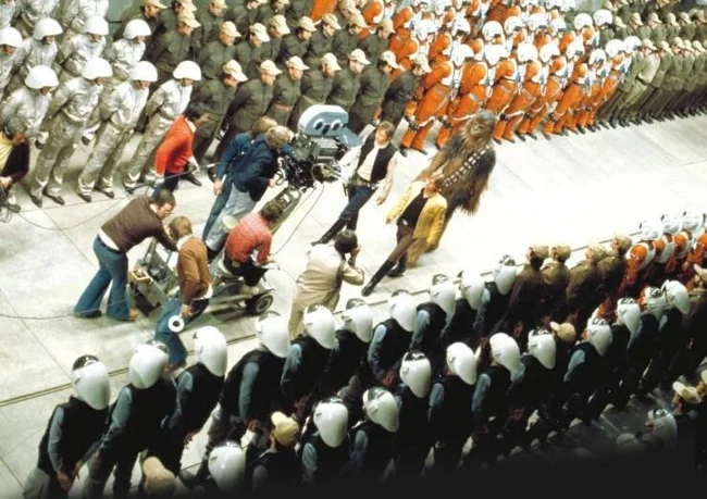Культовая сага "Звёздные войны" берет начало с момента выхода первого фильма в 1977 году, и включает в себя 11 эпизодов основной саги. Последний фильм был снят в 2019 году. Колоссальную звёздную вселенную придумал и реализовал американский режиссер Джордж Лукас. Заглянем за кулисы киновселенной, и посмотрим на интересные и редкие ретро-снимки со съемок этих культовых фильмов.