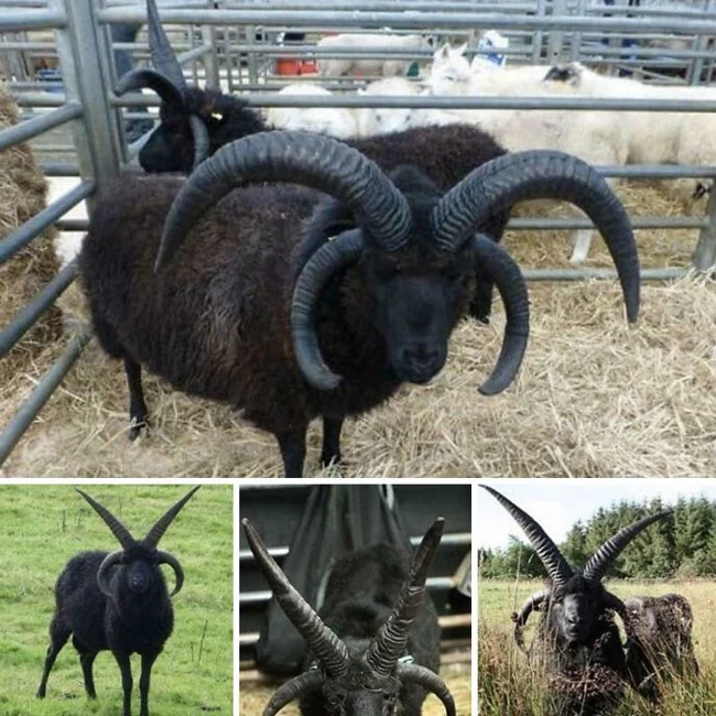 Гебридская овца - порода мелких черных овец из Шотландии с двумя парами рогов
