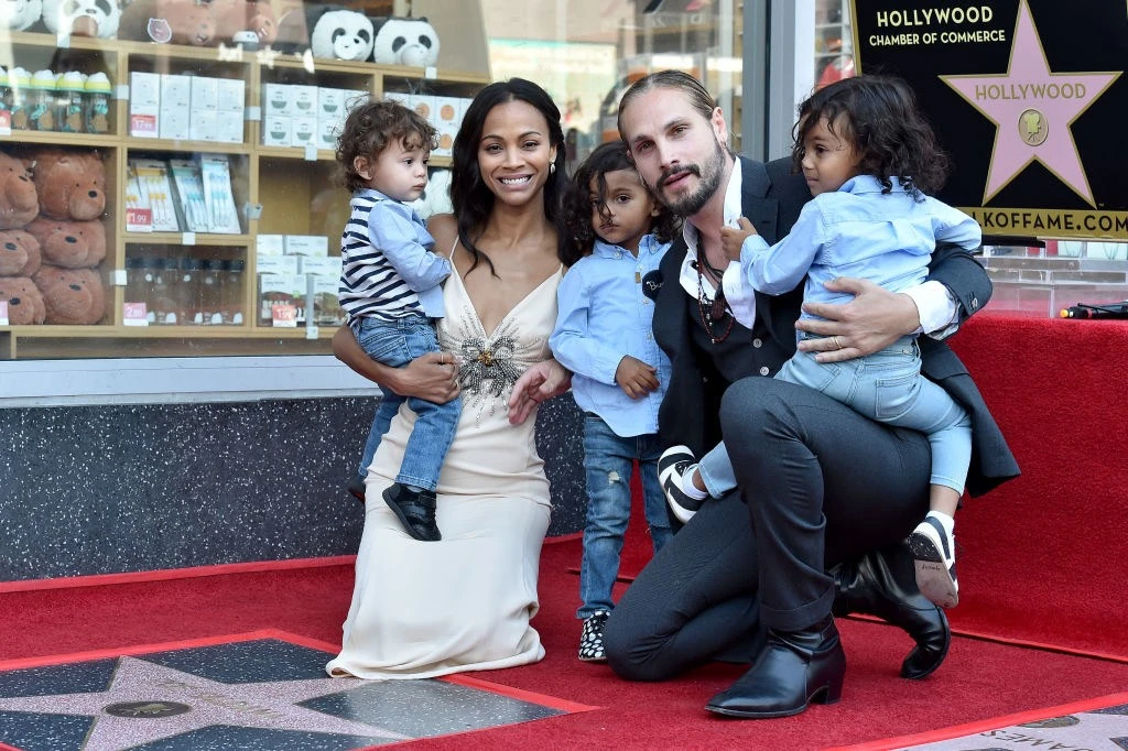 24. Зои Салдана и Марко Перего с детьми Боуи, Саем и Зеной на церемонии вручения звезды на Аллее славы в Голливуде в 2018 году