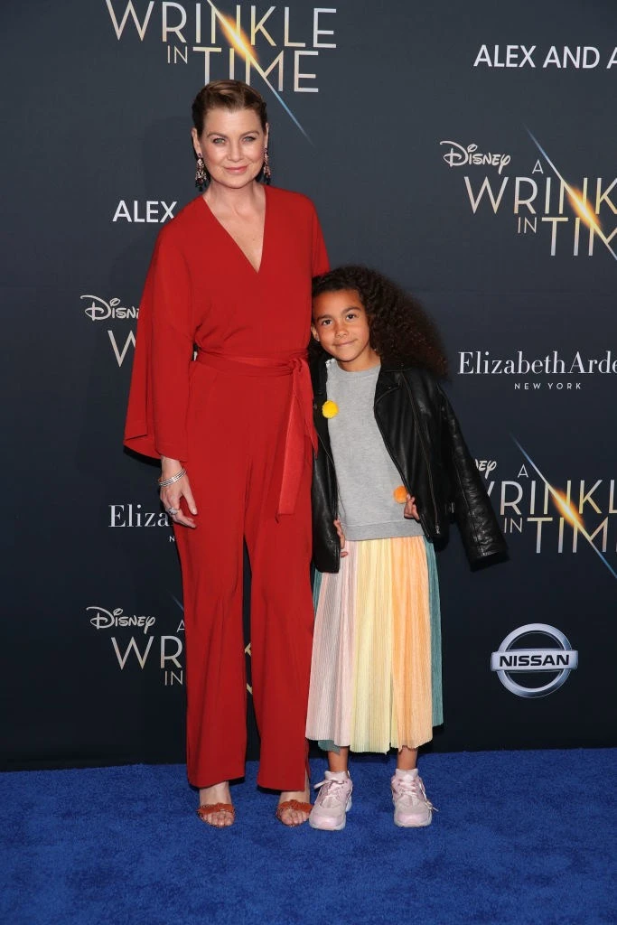 25. Эллен Помпео с дочерью Стеллой на премьере фильма «Излом времени» в 2018 году