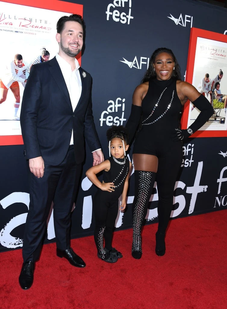 12. Серена Уильямс и Алексис Оганян с дочерью Олимпией на премьере фильма «Король Ричард» в 2021 году