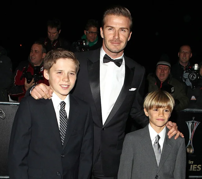 6. Дэвид Бекхэм с сыновьями Бруклином и Ромео на церемонии Sun Military Awards в 2011 году