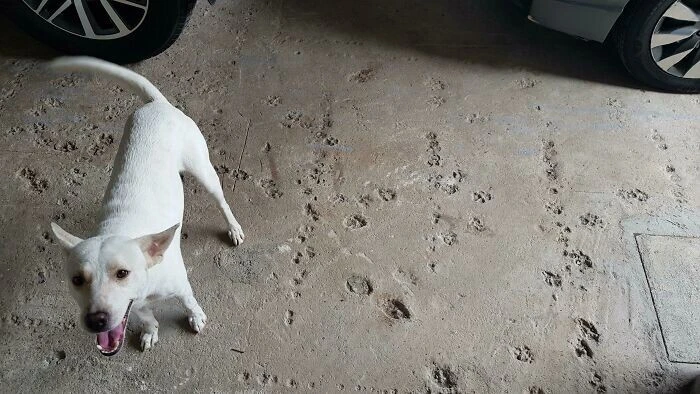 "Делаю ремонт. Мой робот-пылесос случайно зацепил маленький кусок гипсокартона.. Вот его творение"