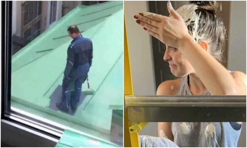 "Переехали в новый дом. Бригада приехала покрасить стены, и этот парень случайно упал с лестницы вместе с банкой краски.."