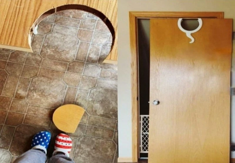 Девушка решила сделать проход в двери для кота.. Но что-то пошло не так