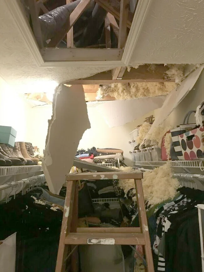 "Решил самостоятельно починить трубы отопления. Провалился сквозь потолок"