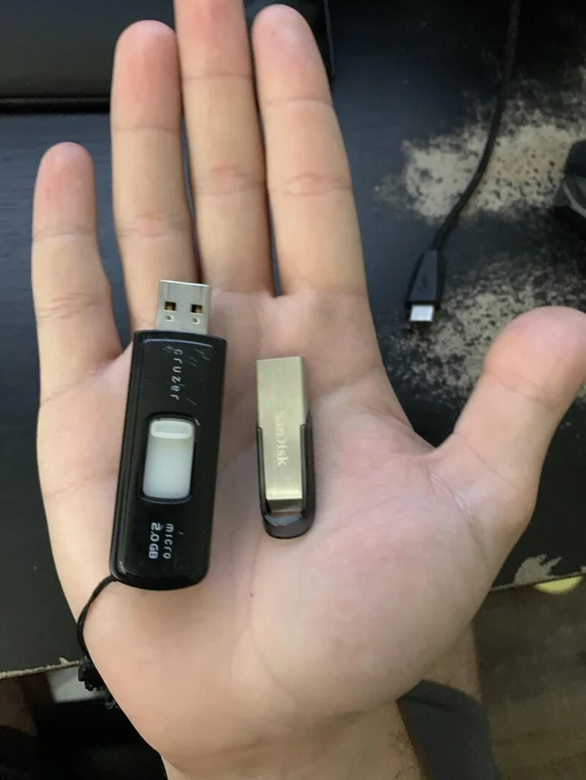 15. Нет большего технического достижения, чем это. Слева старая флешка на 2 Гб, справа новая на 128 Гб