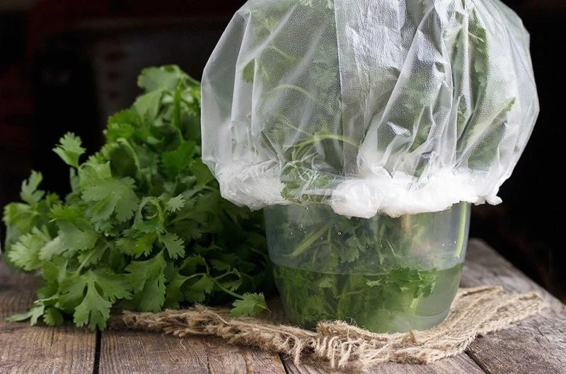 Сейчас на прилавках полно зелени, которую нужно как-то хранить. Правда, в холодильнике она быстро приходит в негодность, что вполне легко можно исправить, продлив срок хранения до двух недель. Для этого достаточно поместить её в стакан с водой, накрыв сверху целлофановым пакетом.
