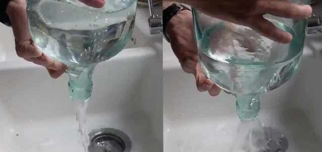 Вероятно, о том, как быстро вылить воду или какую-либо другую жидкость из бутылки знают многие. Для этого достаточно прибегнуть к методу воронки (создать внутри «торнадо», вращая бутылку), заметно упрощающему задачу и экономящему ваше время.