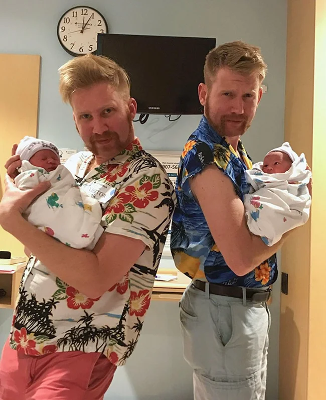 18. "На этой неделе мы с братом стали дядями близнецов. Первое впечатление важно, поэтому, естественно, мы побрились и нарядились, чтобы их поразить"