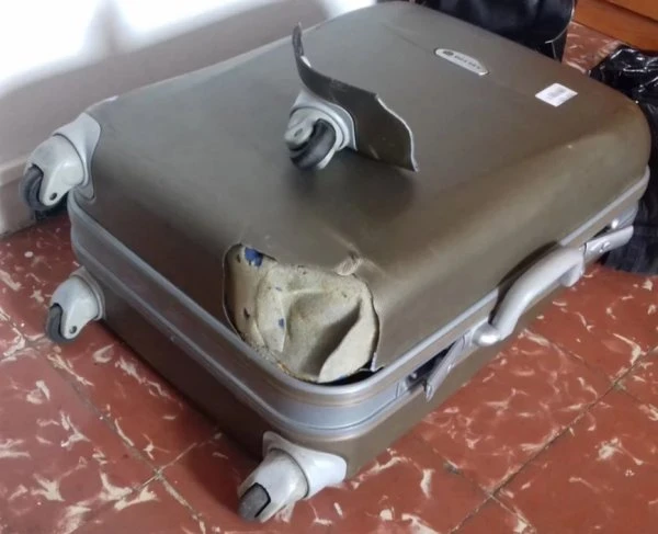 Кто-то из грузчиков швырял чемодан так, что у него отломился кусок пластикового корпуса и колесо