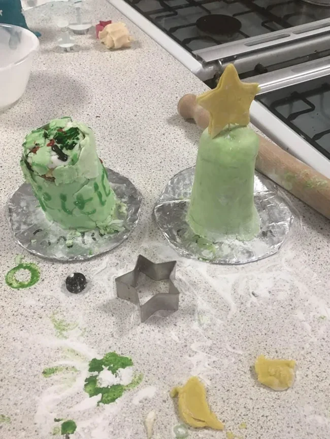 "Мы с подругой решили испечь одинаковые рождественские торты. Справа - ее торт, слева - мой"