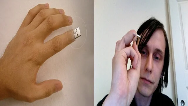 В 2009 году, программист Джерри Джалава установил USB флешку в палец на место утраченной фаланги. Звучит как задумка костюма для Хэллоуина, если честно. Парень действительно потерял часть безымянного пальца на левой руке после того, как на мотоцикле сбил оленя. Джерри быстро научился печатать без одного пальца и даже без протеза, но всё же решил придумать что-то необычное. Например, прикрепить туда флешку. Использовать флешку можно отогнув ноготь на протезе. Парень использует флешку для хранения фотографий и различных компьютерных программ. Искусственный палец отстёгивается, поэтому его можно оставить подключенным к компьютеру.