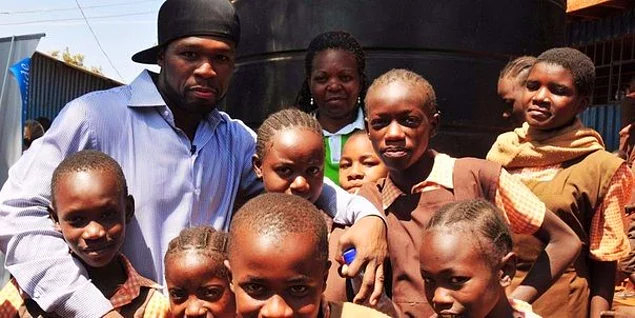 1. Рэпер 50 Cent с благотворительной миссией в Африке - он хочет накормить всех голодающих детей.
