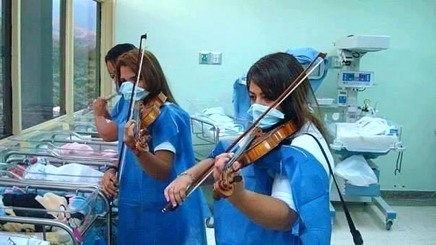 14. Сотрудницы роддома играют на скрипках для новорожденных малышей, Армения, Ереван.
