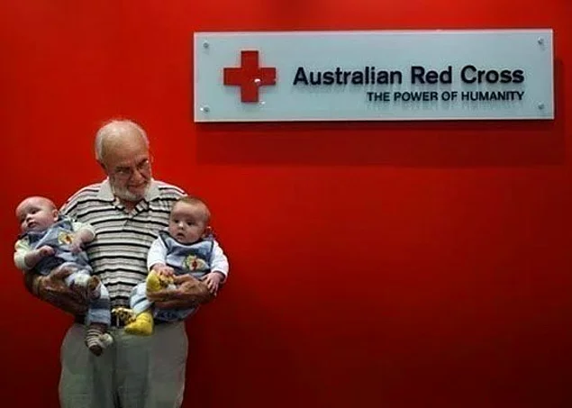 2. Два миллиона женщин и столько же, если не больше, их детей, включая дочь Харрисона, живы и здоровы благодаря вот этому дружелюбному старичку из Австралии с редкой группой крови