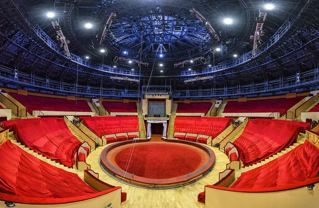 Четко унифицированный диаметр цирковой арены – 13 метров. И этой установки стараются придерживаться все современные цирковые. Еще в далеком XVIII веке англичанин Филип Астлей – наездник, бизнесмен и отец современного цирка в результате долгих исследований, ошибок и проб пришел к выводу, что именно это расстояние идеально подходит для номеров с лошадьми: животному так удобно разгоняться и бежать по кругу без вероятности споткнуться и упасть.
