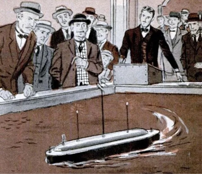 Тесла работал не только с электричеством. В сферу его интересов входили и армейские технологии. В стремлении предотвращать войны в силу их бессмысленности физик хотел создать лодку, которая управлялась бы с помощью радиосигнала. И тогда людей и их гибель, соответственно, можно было бы вывести за скобки в сфере морской артиллерии.