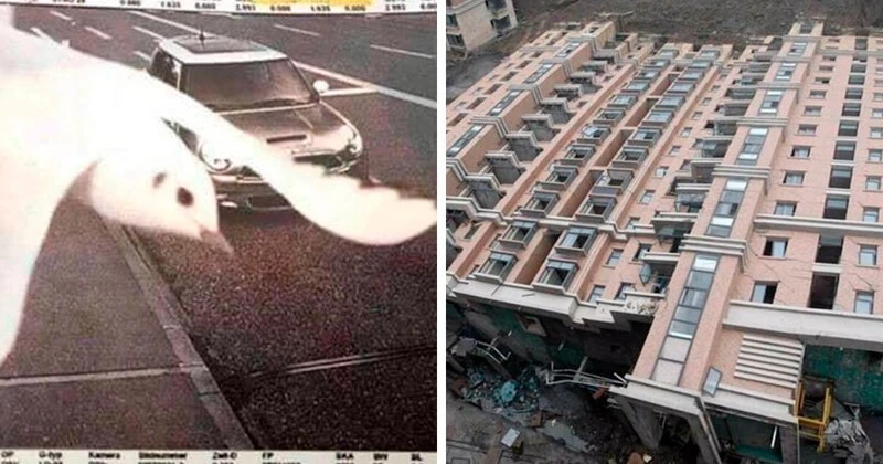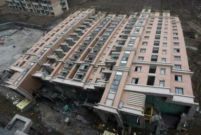 Этот многоквартирный дом в Шанхае рухнул, но остался почти невредимым.