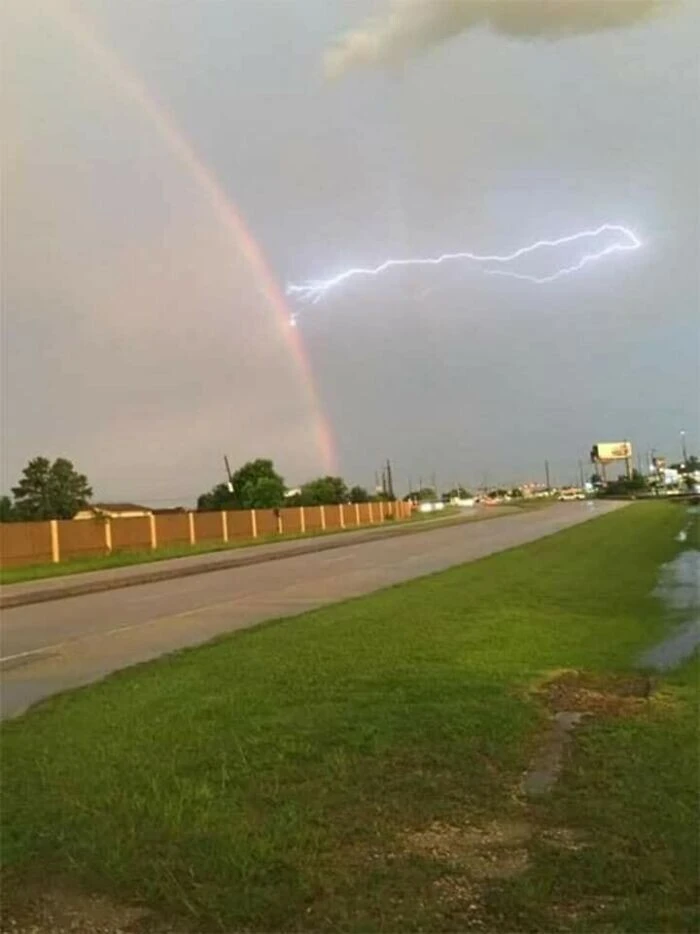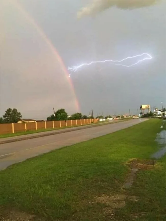 Идеальный момент: молния ударила в радугу