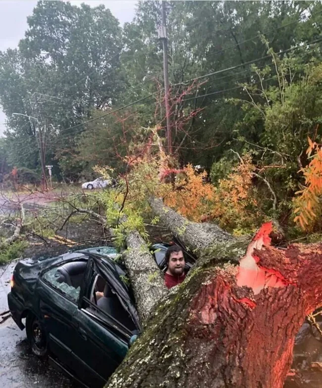 Мужчина чудом избежал удара деревом, упавшим от удара молнии.