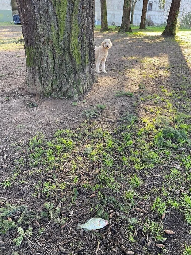 Эта рыба только что упала с неба на собачью площадку — ее уронил белоголовый орлан.