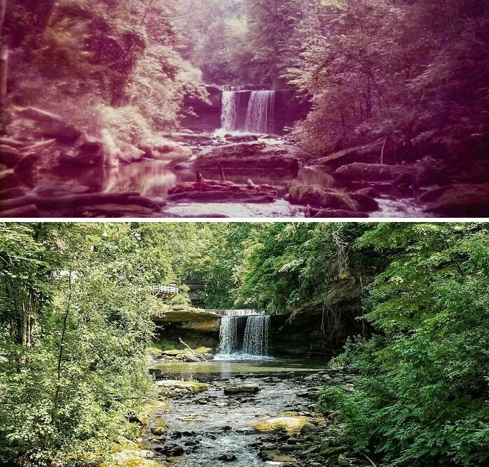Рефотография — это когда одно и то же место снимают спустя какой-то промежуток времени, и получается сравнение в стиле «тогда и сейчас». Пока одни фотографы не заморачиваются и просто делают снимок с того же ракурса, другие крайне ответственно подходят к задаче и пытаются воссоздать атмосферу оригинального изображения. В любом случае, лучшие примеры таких рефотографий можно найти в Reddit-сообществе «Старые фото в реальной жизни».