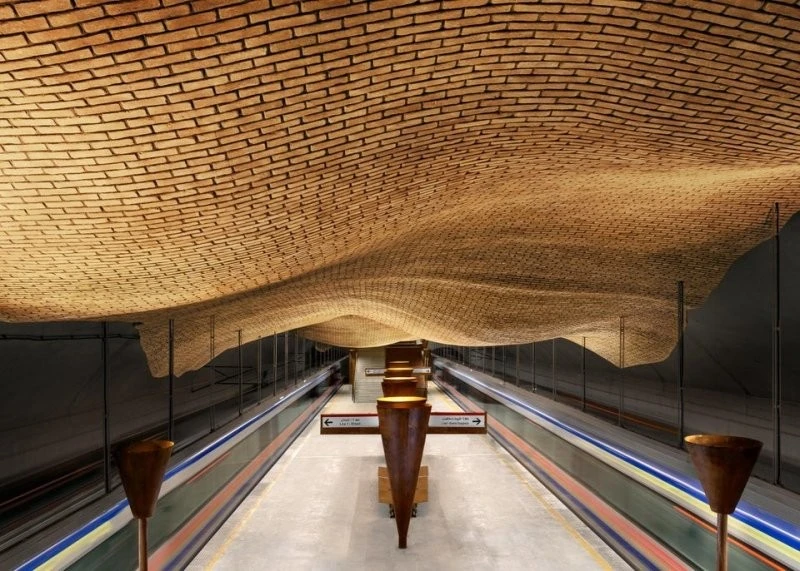Станция метро, чей потолок напоминает песочные рельефы в пустыне. Находится в Ширазе, Иран