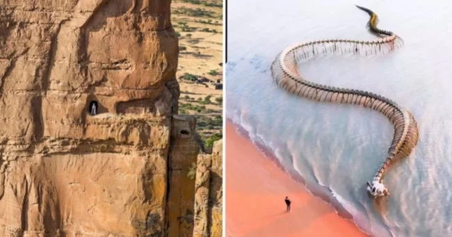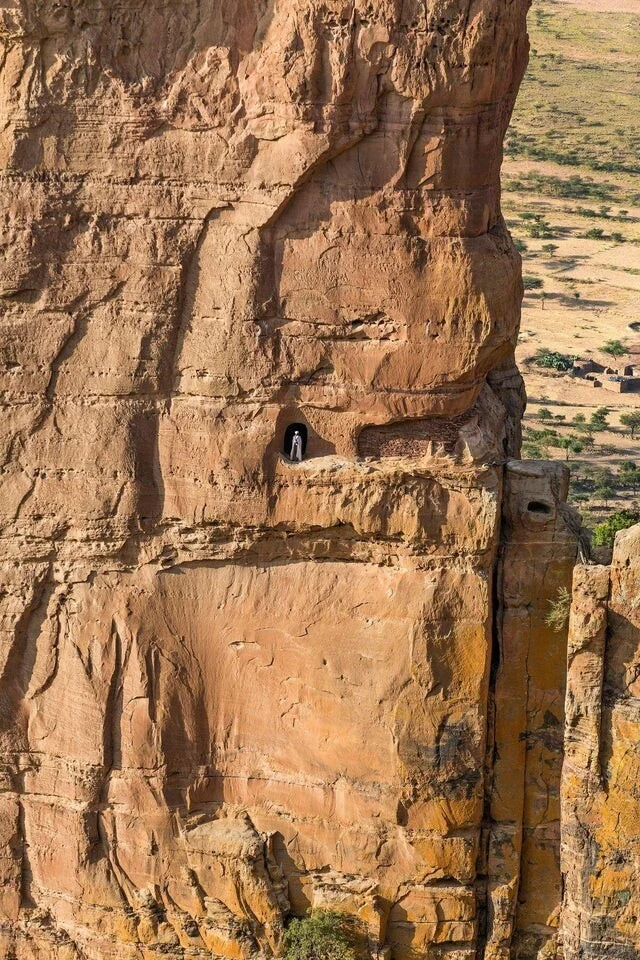 ”Церковь на небесах", находится в Эфиопии. Чтобы добраться до неё, нужно подняться по отвесной скале
