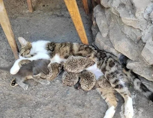 В Ростовской области кошка выкормила ежат, у которых погибла мама