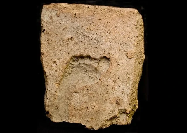 Отпечаток ноги древнеримского мальчика. Сейчас выставлен в музее Мальтона