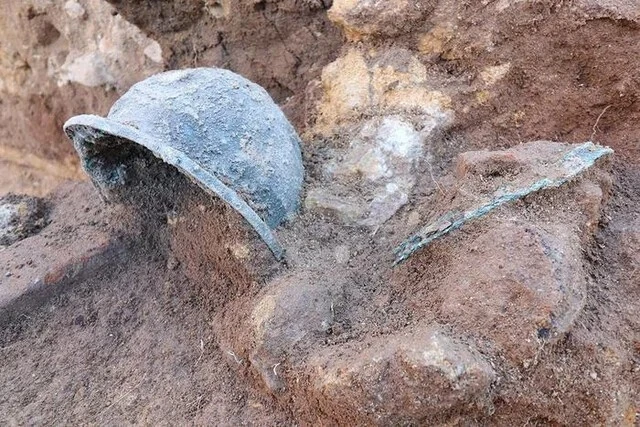 Шлемы и оружие, использовавшиеся в знаменитой морской битве при Алалии в VI веке до н.э., в месте археологических раскопок Пестум и Велия