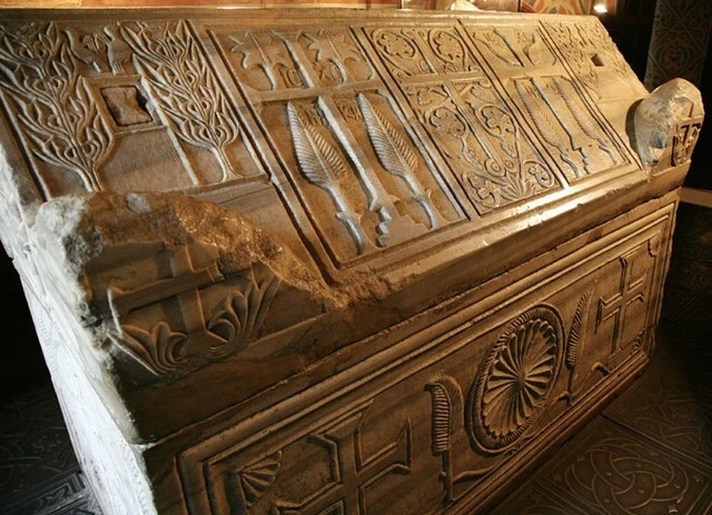Мраморный саркофаг князя Ярослава Мудрого и его жены Ингегерд Олофсдоттер Шведской в Киеве ![]()