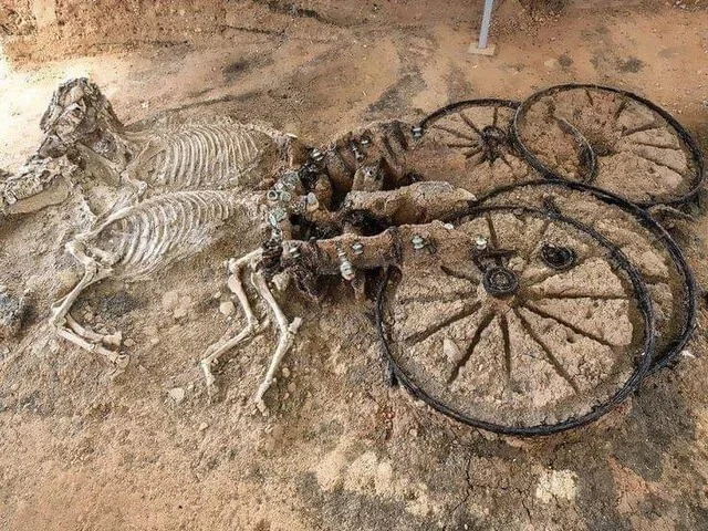 Фракийская колесница со скелетами лошадей возрастом 2000 лет