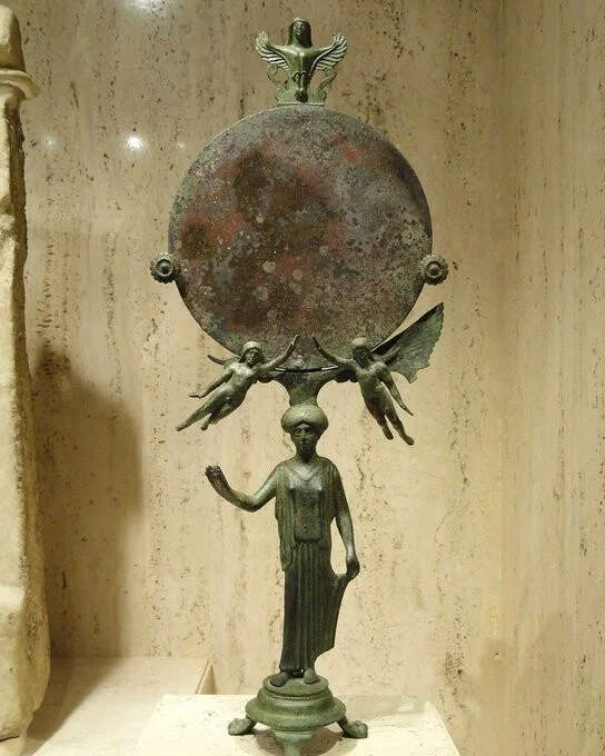 Бронзовое зеркало, найденное в этрусской гробнице. 465-450 гг. до н.э. Сейчас зеркало выставлено в Художественном музее Нельсона-Аткинса