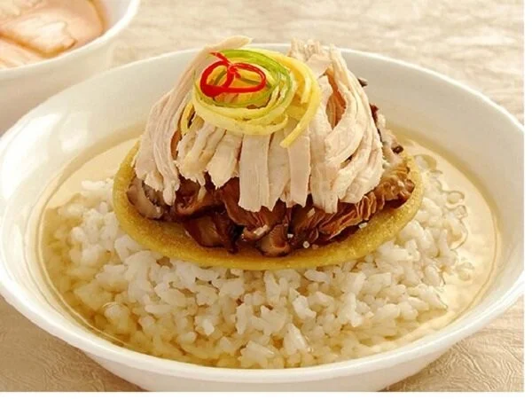 А начнем мы с пхеньянского онбана. Как следует из названия, это блюдо является своеобразной визитной карточкой Пхеньяна, столицы Северной Кореи. Оно состоит из пышного риса, покрытого вареной и измельченной курицей, ломтиками замоченных сушеных грибов, нарезанным луком и чесноком. Все это дело залито теплым ароматным бульоном и дополнено нарезанными яйцами и блинчиком из зеленой фасоли.