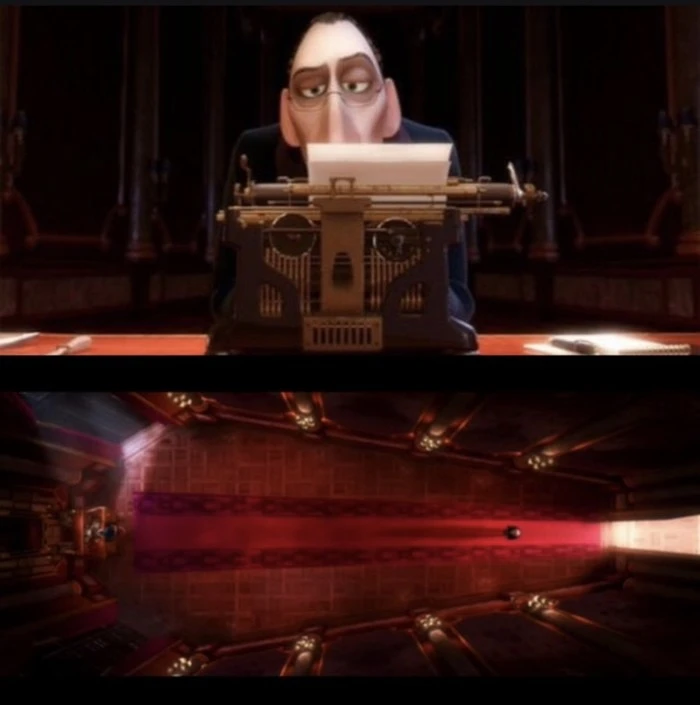 В мультфильме «Рататуй» форма кабинета критика напоминает гроб, а в его печатной машинке можно разглядеть очертания черепа ![]()